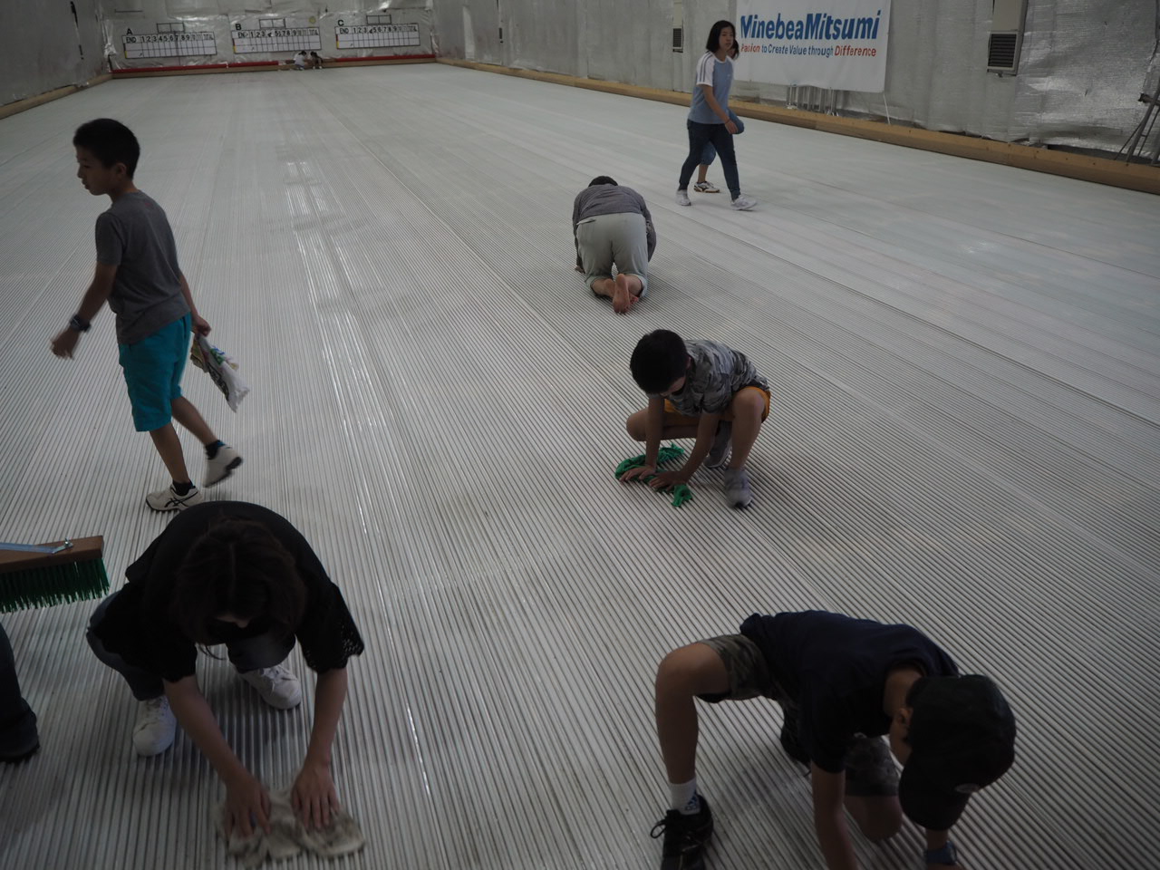現在、オフシーズンでもありリンクのメンテナンス用の資材やカーリングストーンも並んでいますが、ゆったりと出来るような場所を確保して御代田のさわやかな風を感じながらのレッスンとなったようです。